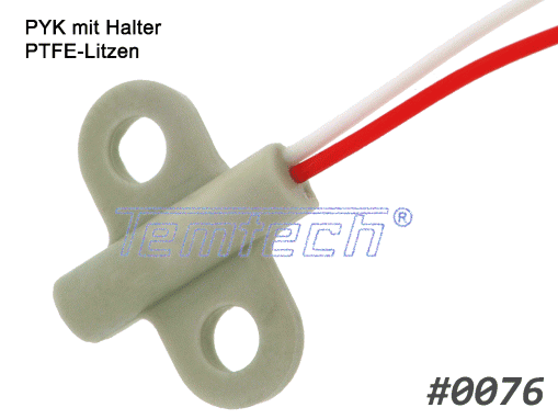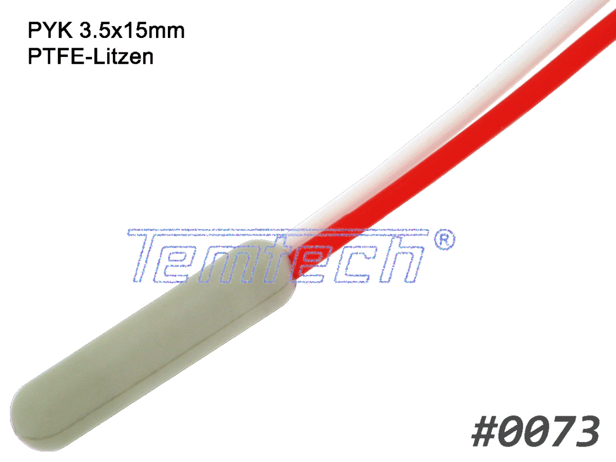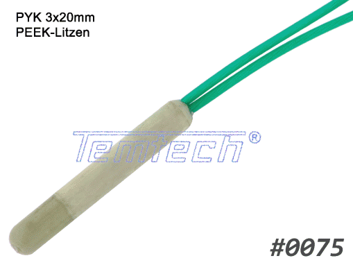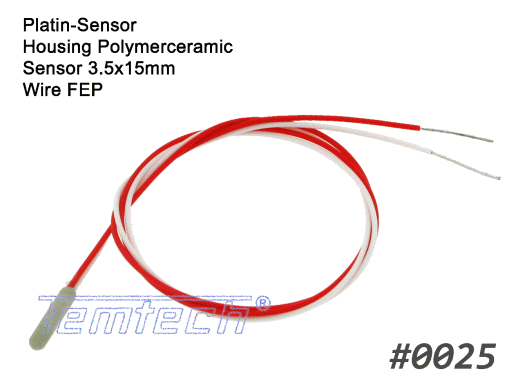 Platin-Temperatursensor ummantelt mit Polymerkeramik, fertig konfektioniert mit einer Standard-Anschlussleitung. Die Ummantelung sichert eine hohe mechanische Belastbarkeit, so dass der Sensor ohne weitere Schutzmaßnahmen verbaut werden kann. Die Polymerkeramik hat eine keramikähnliche thermische Leitfähigkeit und gewährleistet somit kurze Ansprechzeiten.